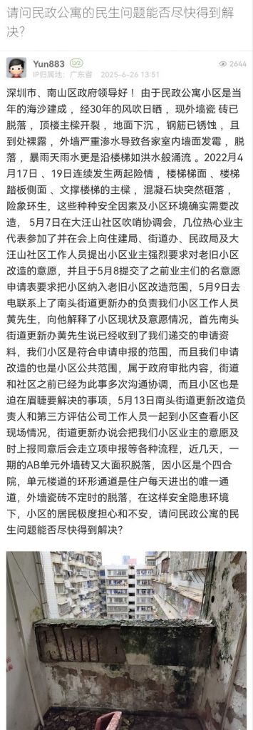 25. 帖文《請問民政公寓的民生問題能否盡快得到解決?》