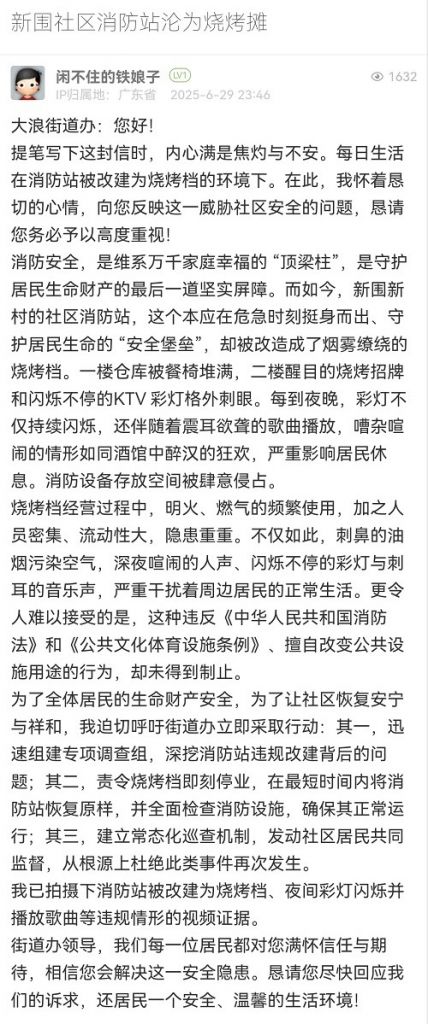 23. 帖文《新圍社區(qū)消防站淪為燒烤攤》
