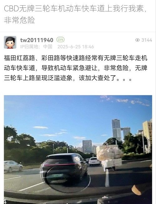 8. 帖文《CBD無牌三輪車機動車快車道上我行我素,非常危險》