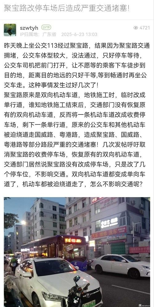 4. 帖文《聚寶路改停車場后造成嚴(yán)重交通堵塞!》