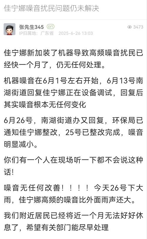 11. 帖文《佳寧娜噪音擾民問題仍未解決》