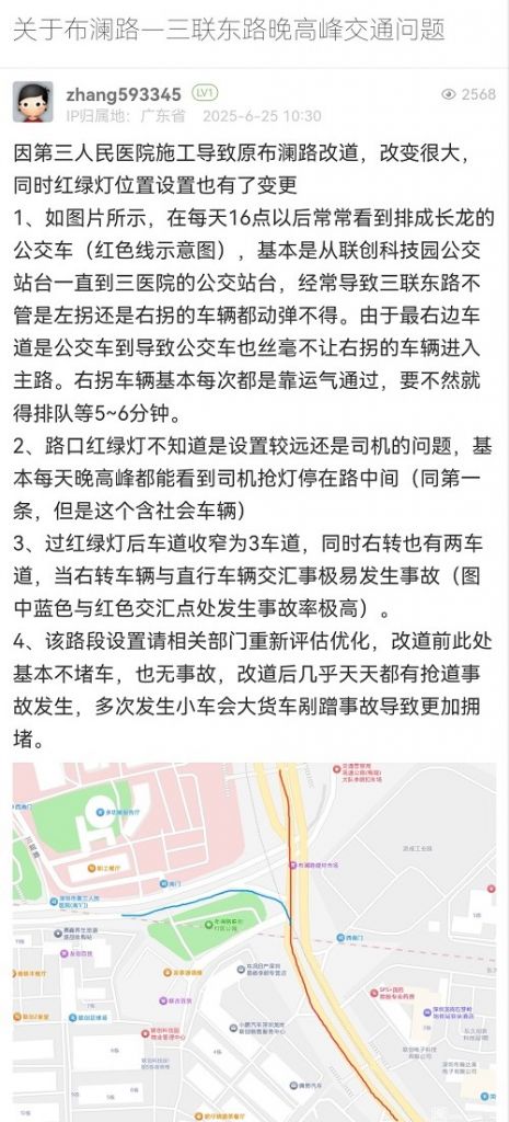 7. 帖文《關(guān)于布瀾路—三聯(lián)東路晚高峰交通問題》
