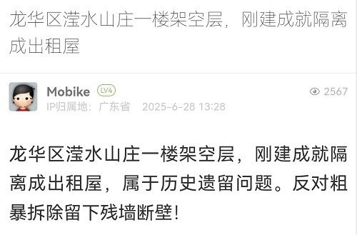18. 帖文《龍華區(qū)瀅水山莊一樓架空層,剛建成就隔離成出租屋》