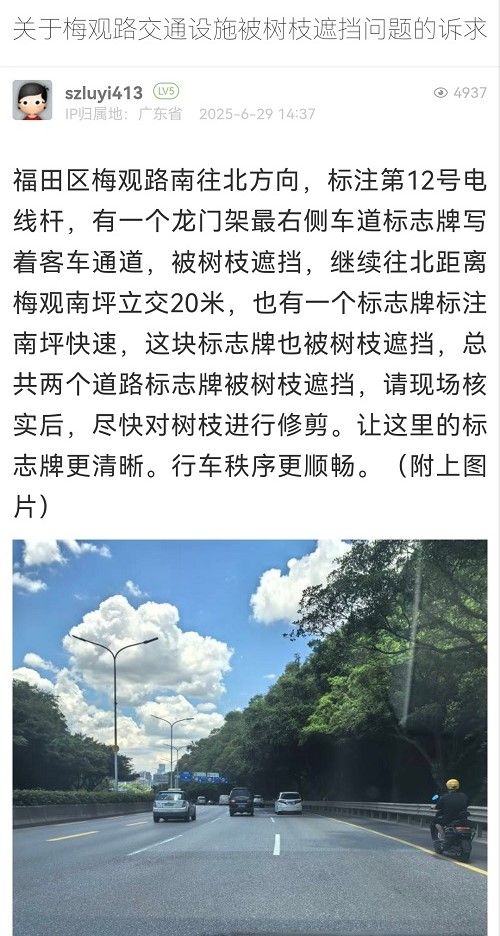27. 帖文《關(guān)于梅觀路交通設(shè)施被樹枝遮擋問題的訴求》