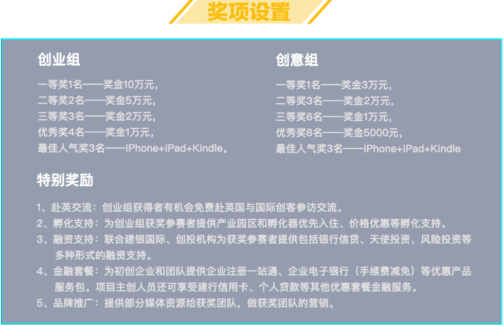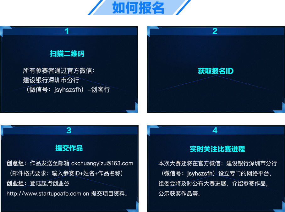 藍色夢工廠創(chuàng)客大賽由中國建設(shè)銀行深圳市分行、深圳國家高技術(shù)產(chǎn)業(yè)創(chuàng)新中心和建銀國際聯(lián)合主辦,積極響應(yīng)國家大眾創(chuàng)業(yè)萬眾創(chuàng)新,支持深圳的創(chuàng)客們實現(xiàn)夢想。大賽組委會將邀請創(chuàng)業(yè)專家、科技專家、風(fēng)險投資專家等對參賽項目的商業(yè)前景、創(chuàng)新性、成長性以及團隊素質(zhì)等維度進行綜合考察。我們將為獲獎創(chuàng)客團隊提供豐厚獎金、融資支持、初創(chuàng)企業(yè)金融套餐、免費赴英國開展企業(yè)參訪交流、高新區(qū)孵化器場地優(yōu)先入駐、價格優(yōu)惠以及媒體曝光、品牌推廣等多項支持。
