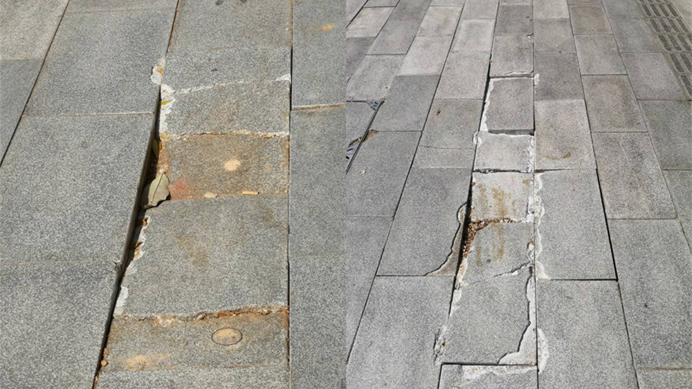 松崗人行道地磚破損盼修復(fù),官方:核實(shí)情況后處理